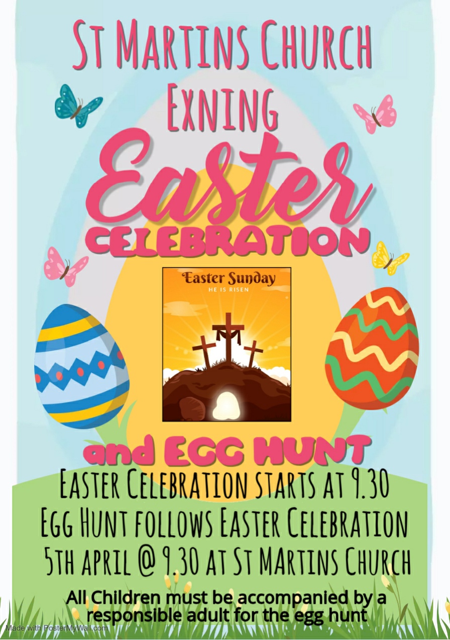 Instead, ther will be an Easter Celebration in Church followed by an Egg Hunt in the churchyard.